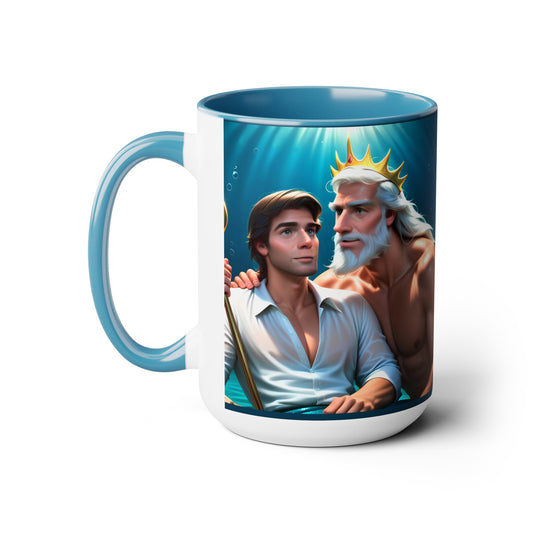 Prince Eric and King Triton Living Out Under the Sea Two-Tone Coffee Mugs, 15oz