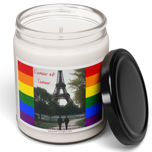 French "l'amour est l'amour" (Love is Love) Gay Romance Eiffel Tower Scented Soy Candle, 9oz