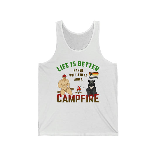 La vida es mejor desnuda con un oso y una fogata camiseta sin mangas unisex para adultos